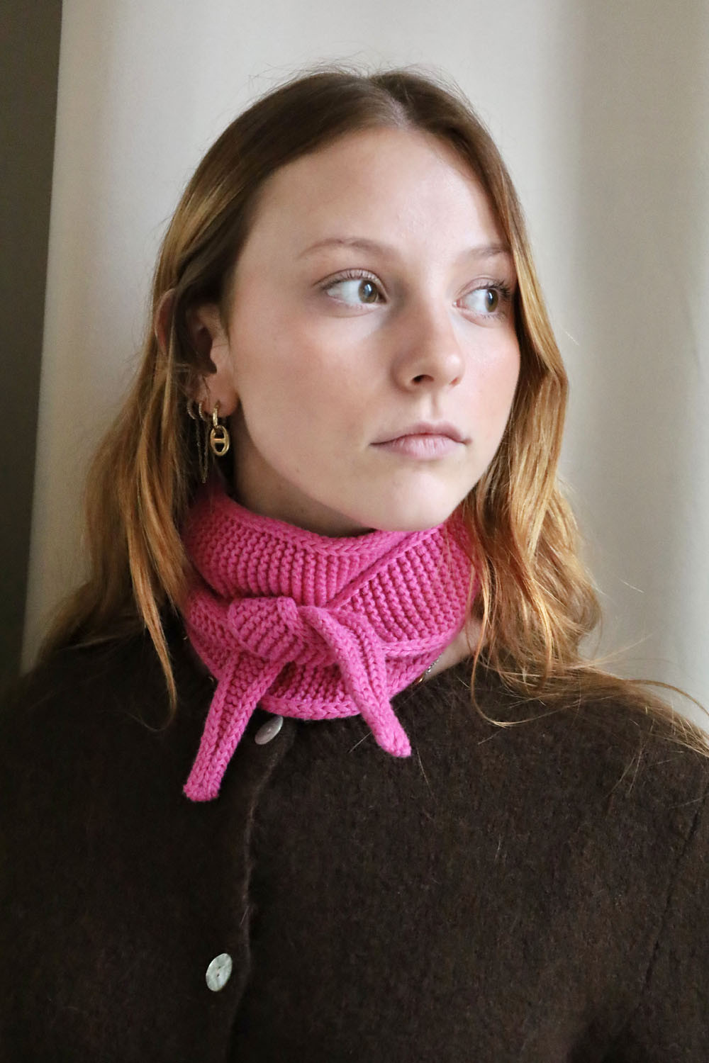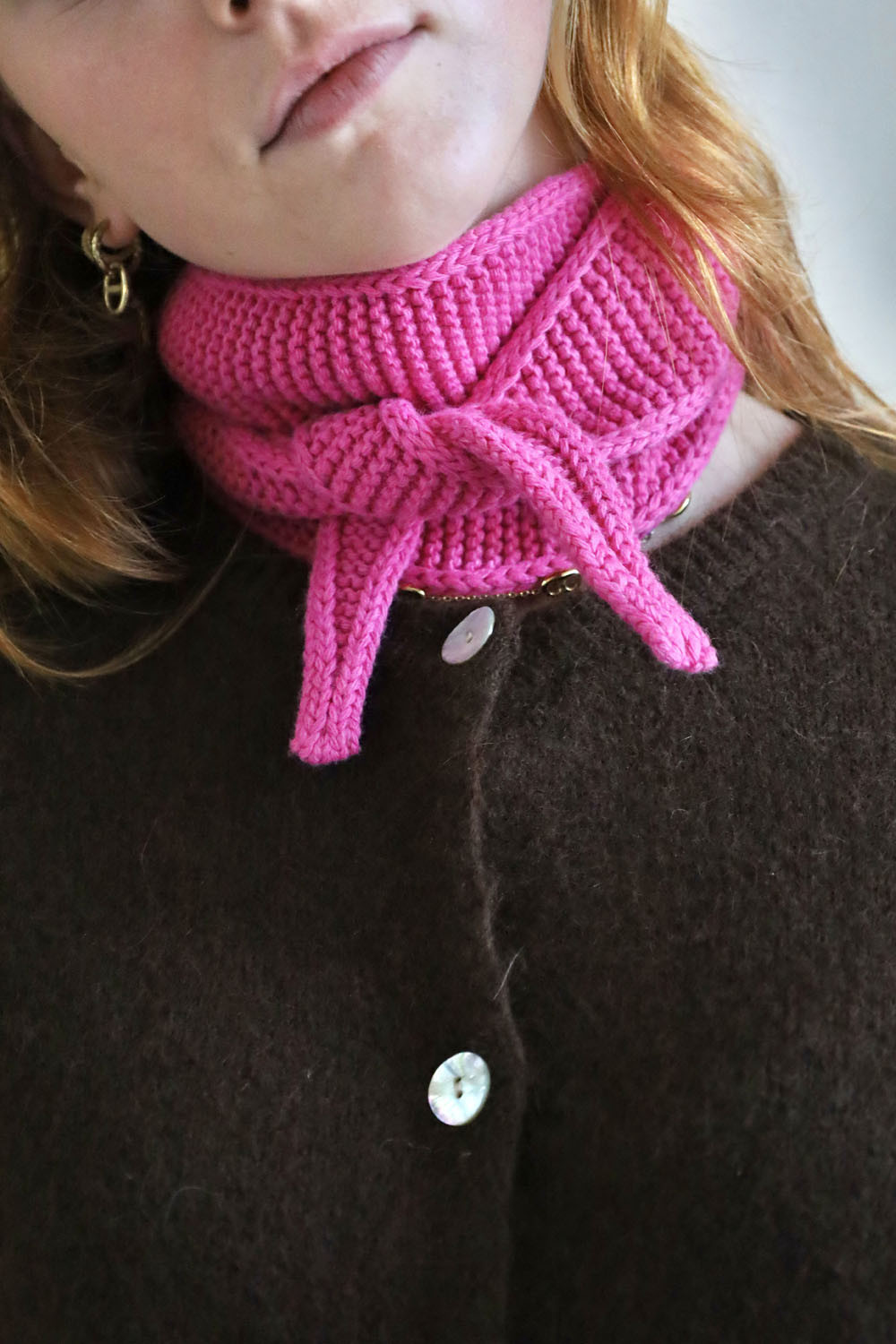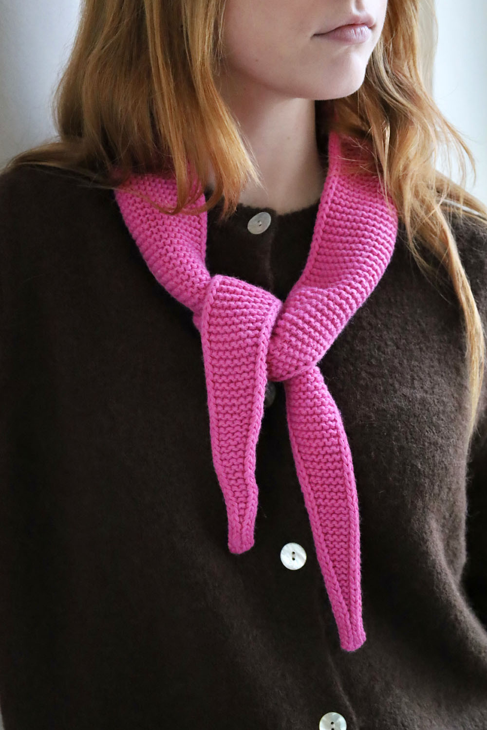 - Mini écharpe de cou en tricot rose