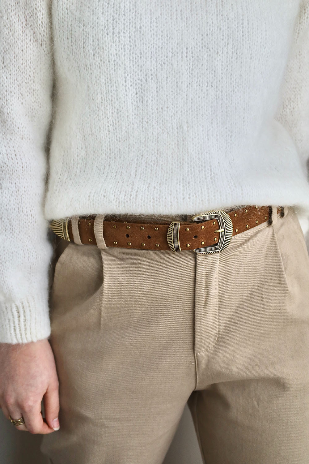 - Ceinture de pantalon camel à clous