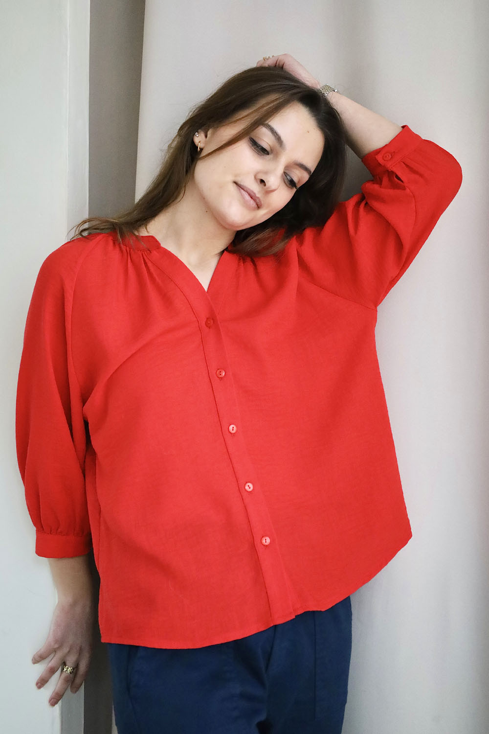 - Chemise fluide boutonnée rouge